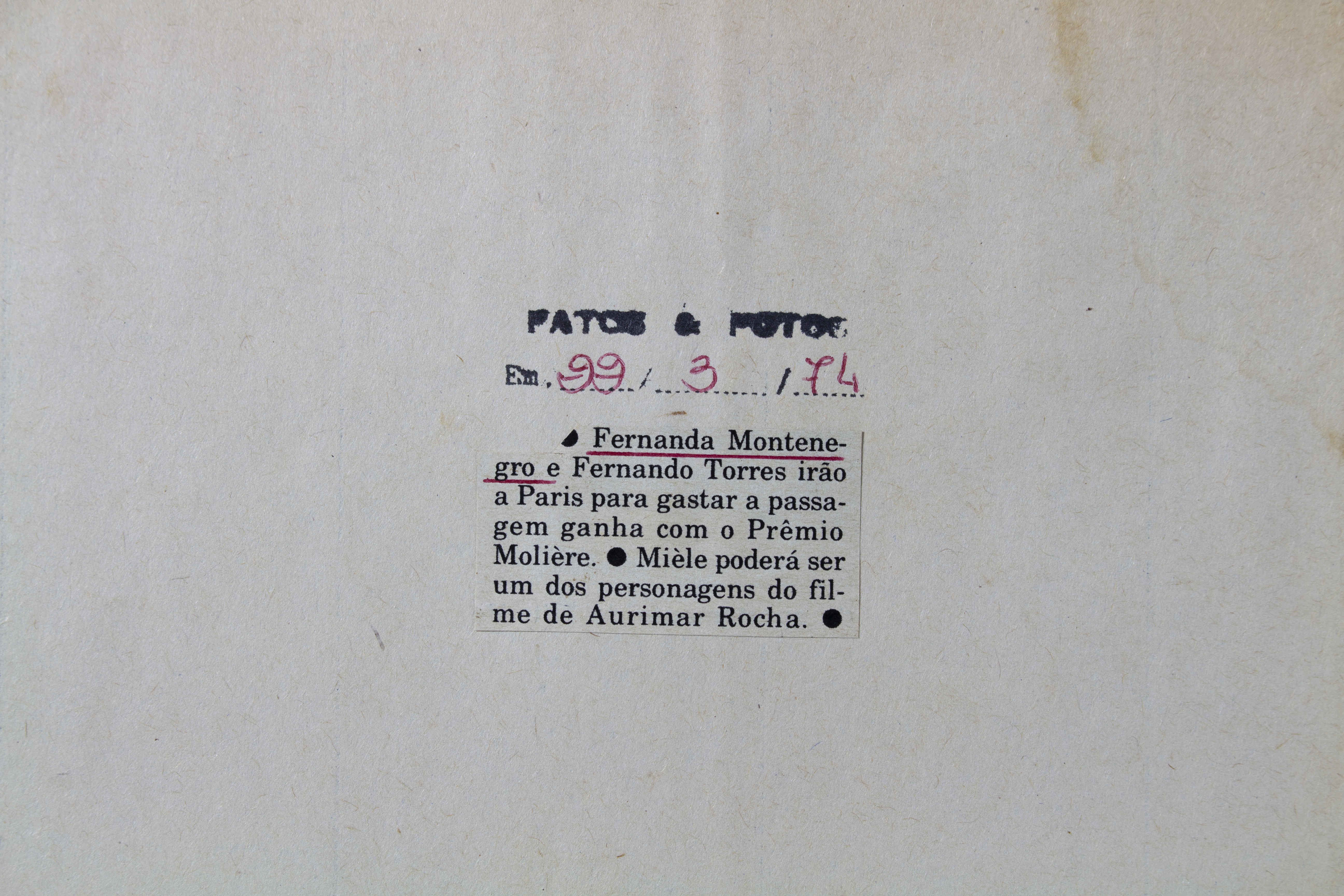[Fernanda Montenegro e Fernando Torres Irão a Paris...]. Fatos e Fotos